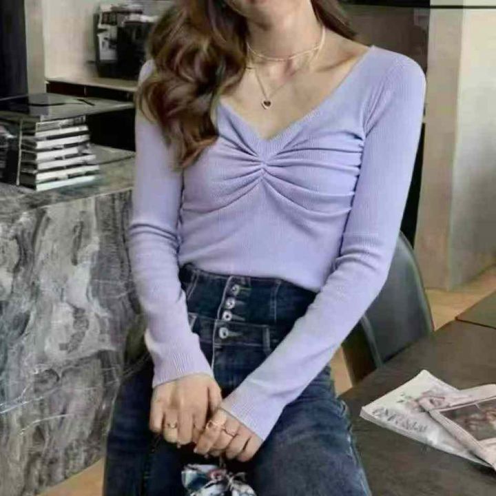 捡漏款,秋季新款弹力修身显瘦V领褶皱套头毛衣,独立包装,单款多色,均码面料柔软舒适弹力大,100件,全清5.9元超低价秒杀!