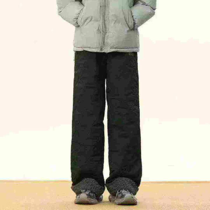 防寒休闲羊羔保暖裤男女冬季潮宽松葫芦纹防水直筒裤加...