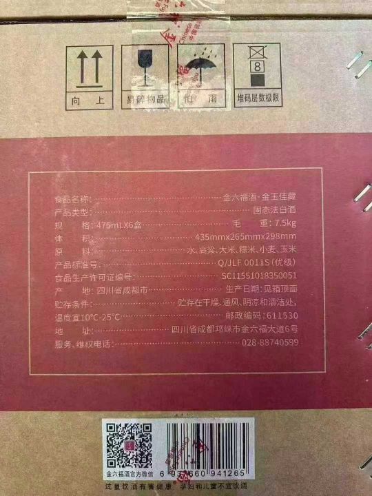 高端品牌金六福酒100多一箱,23年,50.8度和40.8度,...