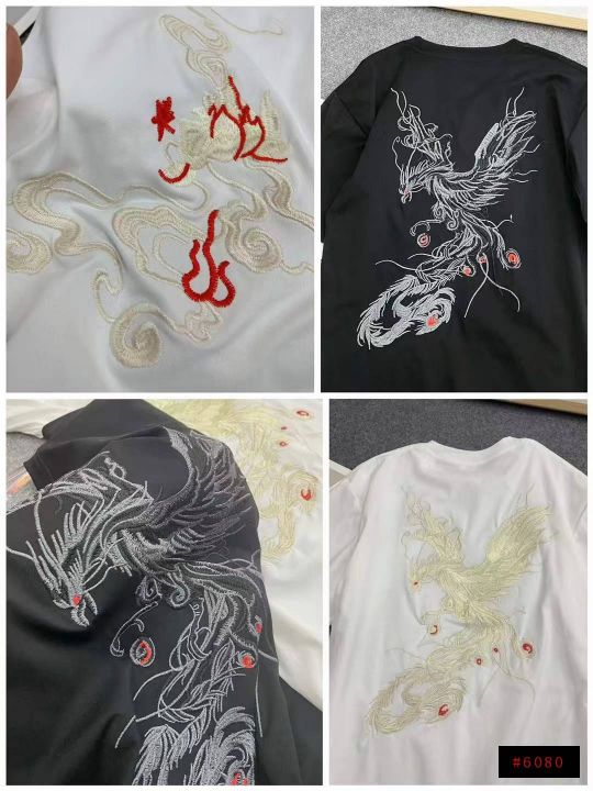 面料舒适透气,后领包边,图案刺绣,背后大图,