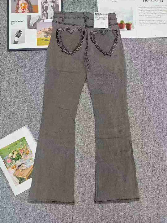天猫仓回收1058件网红爆款复古设计感灰色显瘦弹力高腰微喇牛仔裤,码数S-XL。面料柔软舒适,刚做出来的新货,背后口袋爱心设计,版型显高显瘦显身材,全部原包装。分货➕1。 货号:24862