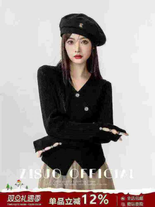 不规则v领针织衫女秋冬设计感小众毛衣开叉修身上衣潮,独立包装,550件,清...