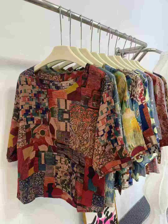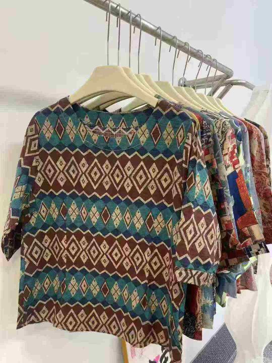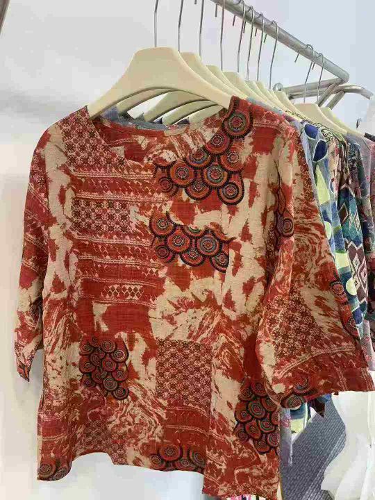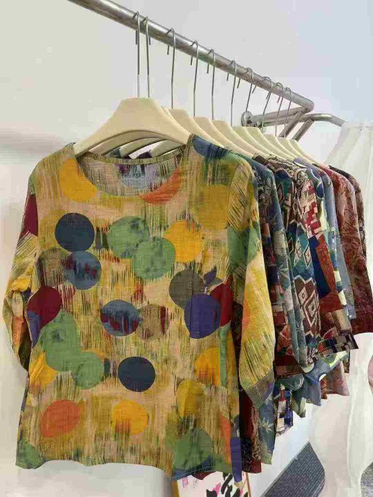 杭派高品质妈妈棉麻系列中袖☕️2800件全清9.9 分货+1 ,均码,80-140斤,小整十几个花型,精品独立包装,夏季宽松五分袖妈妈显瘦上衣棉麻上衣新款民族风短袖T恤