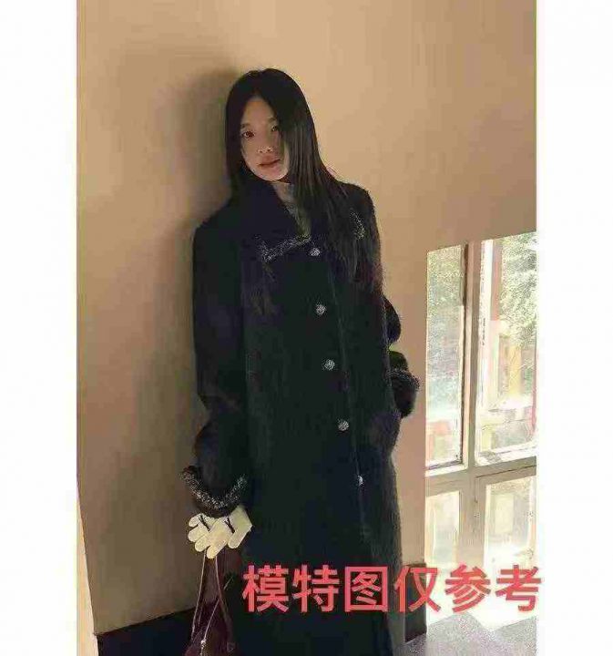 25.8清200件水貂毛大衣单排扣简约百搭水貂绒风衣外套...