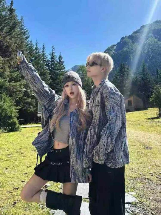 [月亮]:美式复古高级感工装情侣款扎染外套