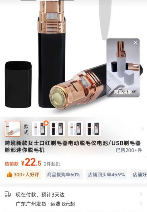 200个口红式电动剃毛器电池款,全清每个2.8元秒!