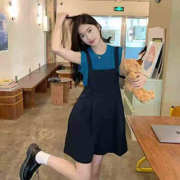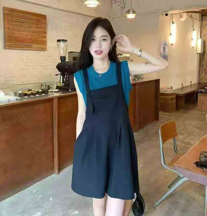 夏季新款学院风冰丝顺滑减龄网红休闲背带西装短裤,独...
