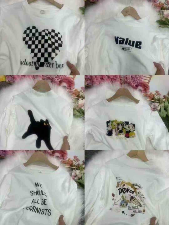 圆领/半高领德绒打底衫女新款内搭宽松白色印花中长款长袖T恤,2种款式,圆领有后领包边,小整款,有少量光版,1到4码,850件左右,独立包装,货品干净,5.8清,分货加1。 货号:24862