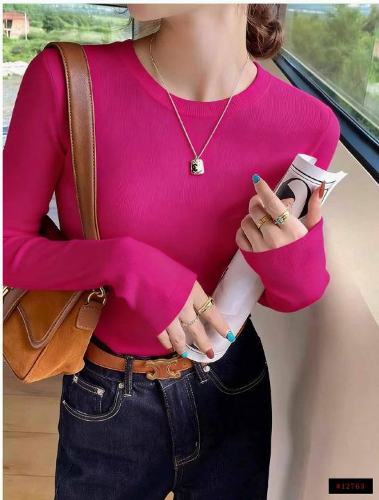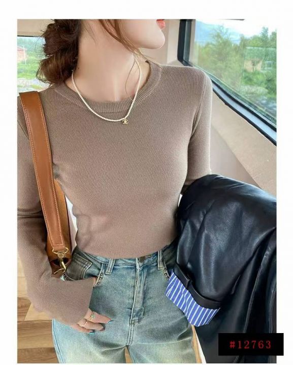 秋冬新款净版简约弹力修身显瘦圆领包芯纱套头毛衣,独...