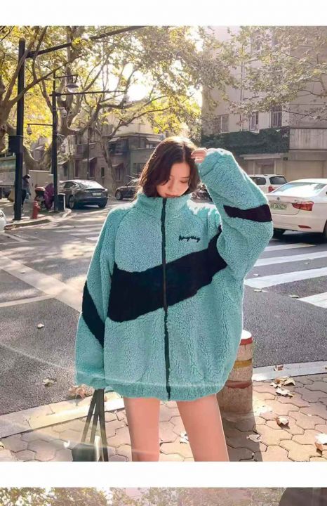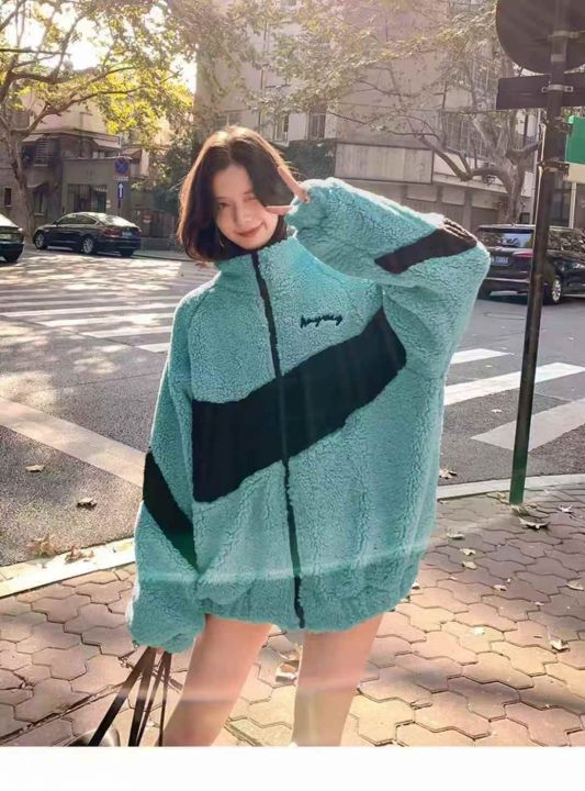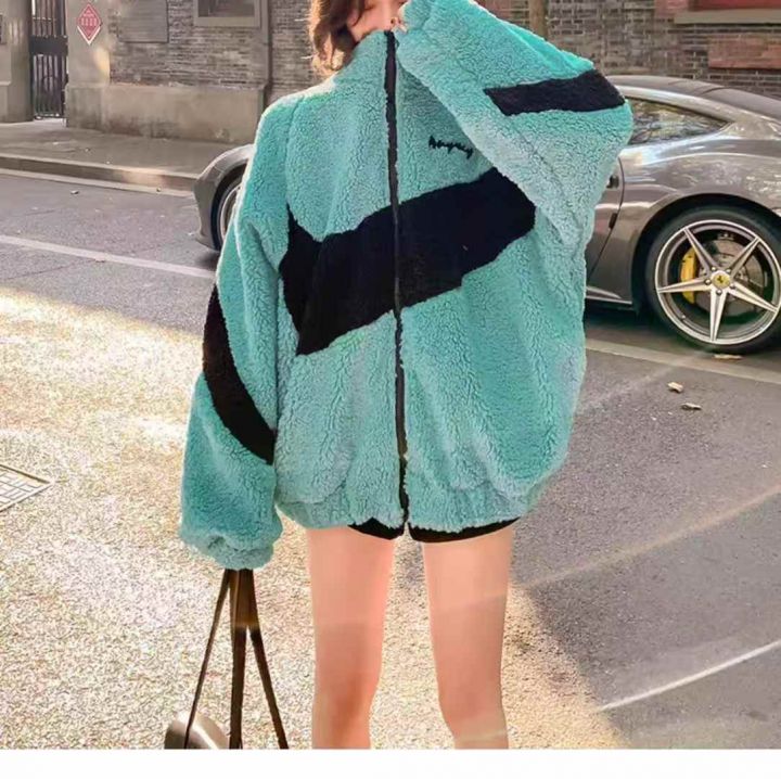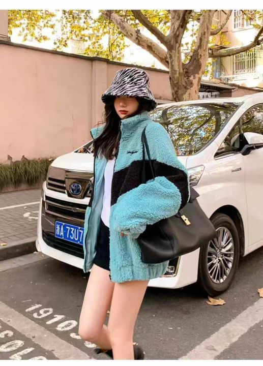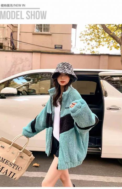 90件左右湖蓝色羊羔绒外套女秋冬网红靓妹款盐系复古港...