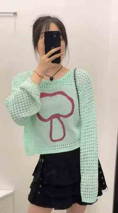 春夏新款美式辣妹镂空高级感印花撞色防晒针织罩衫,独立包装,均码面料柔软...