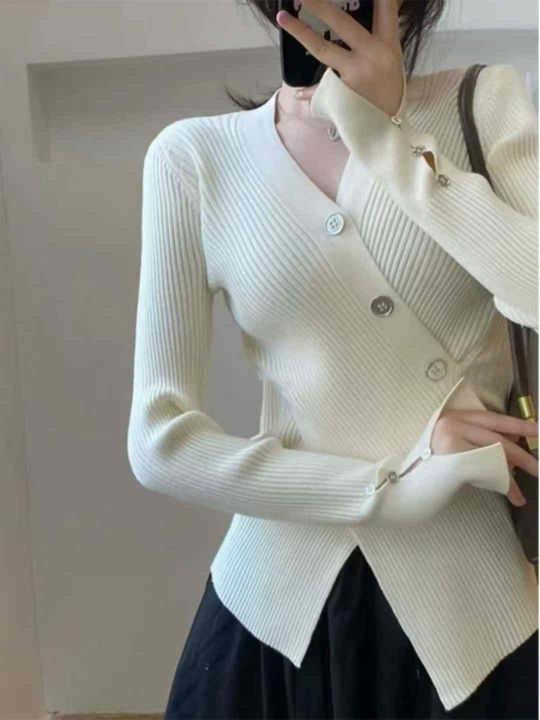 不规则v领针织衫女秋冬设计感小众毛衣开叉修身上衣潮,独立包装,550件,清7.8,分➕1