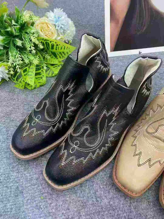 100双刺绣粗跟时尚皮质短靴,品质好,款式新颖时尚,36码一41码,独立包装...