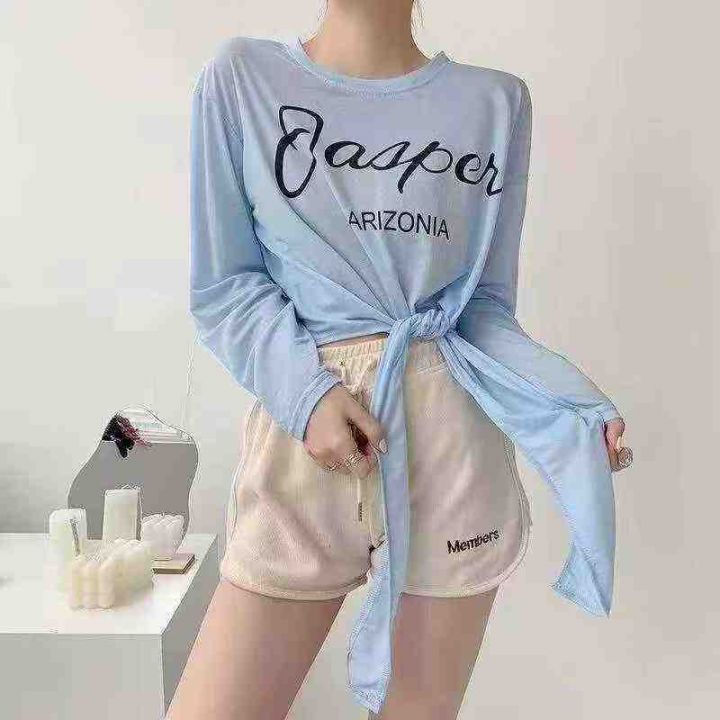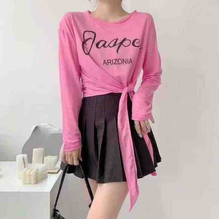 882件夏季热卖甜酷薄款开叉长袖正肩显瘦T恤女辣妹宽松百搭冰丝防晒罩衫上衣,独立包装,均码,全清价4.5元,分货加1