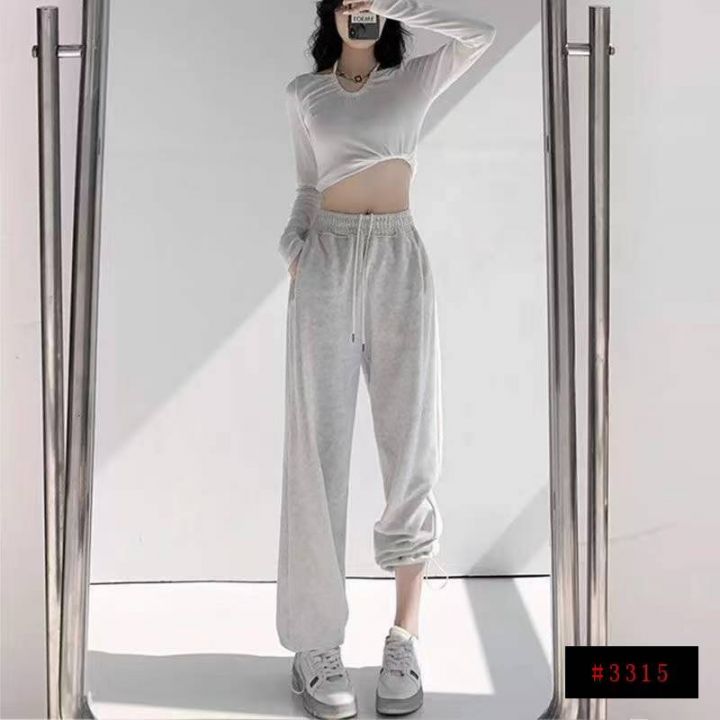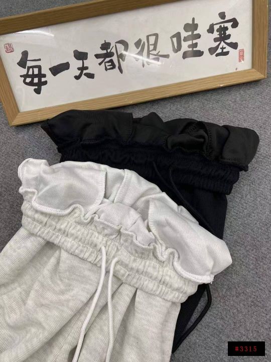 华夫格休闲裤129件7.5,抽绳松紧腰,有口袋,裤脚可束...