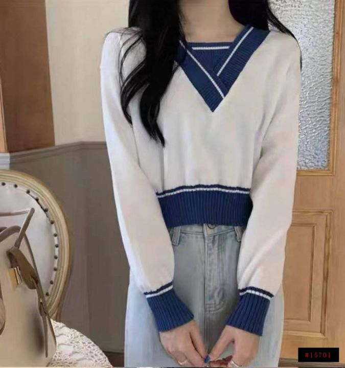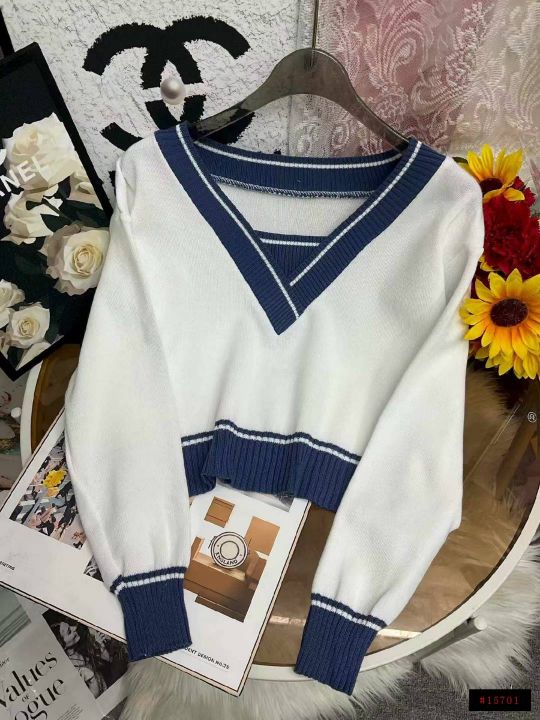 捡漏款,春秋新款韩系撞色V领针织套头毛衣,独立包装...