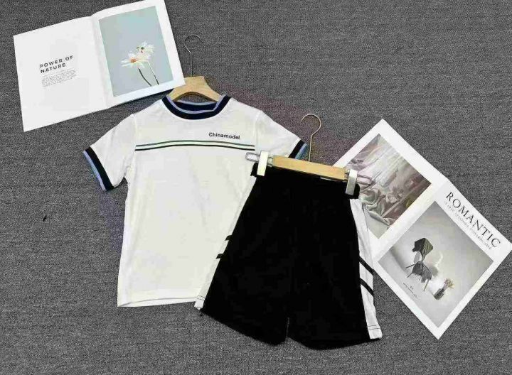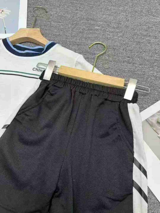 天猫在售款120套左右高品质男女款中大童夏季纯棉运动休闲短裤套装,单款单色,码数120-140,独立包装带吊牌