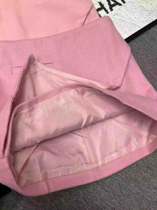 秋冬新款净版港味纯欲粉色设计感不规则A字半身毛衣裙...