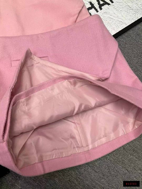 秋冬新款净版港味纯欲粉色设计感不规则A字半身毛衣裙...