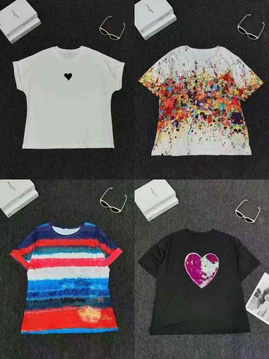女装外贸短袖印花条纹夏季时尚T恤上衣,独立包装,码...