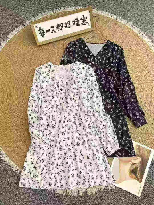 法式碎花连衣裙88件6.9,V领设计,绑带收腰,码数3码(L),独立包装...
