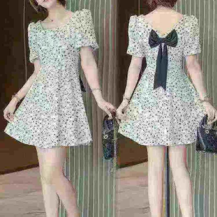 法式方领泡泡袖连衣裙96件8.5,后蝴蝶结设计,侧腰拉链,绣花设计,码数2,...
