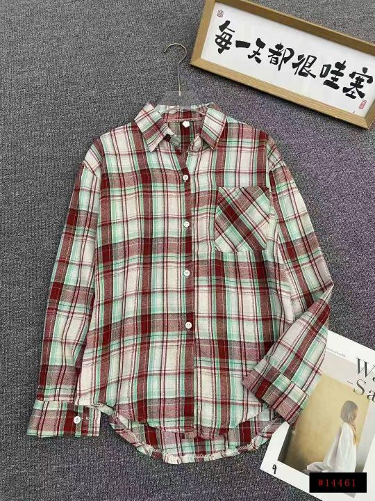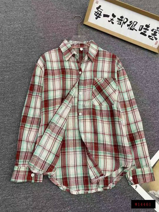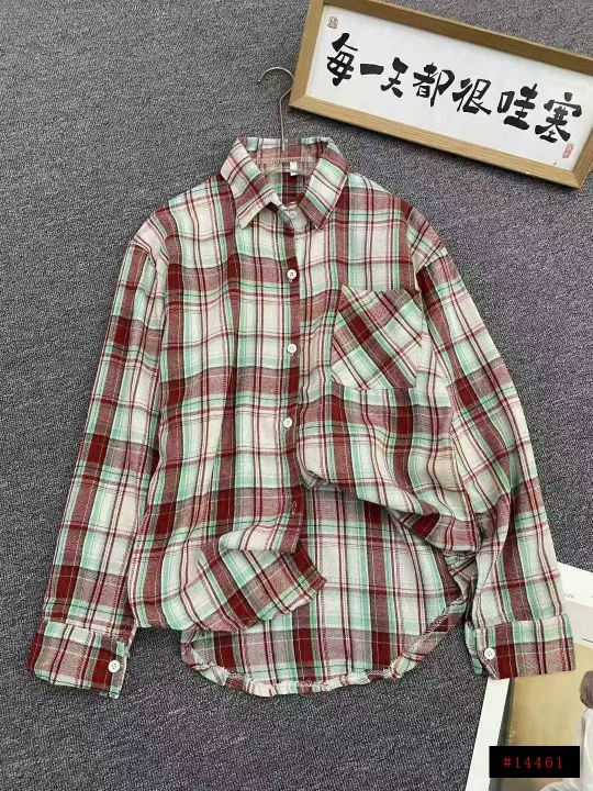 复古格子衬衫373件9.8,面料柔软舒适,弧形下摆,码数...