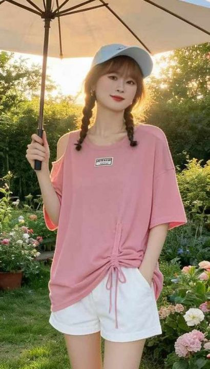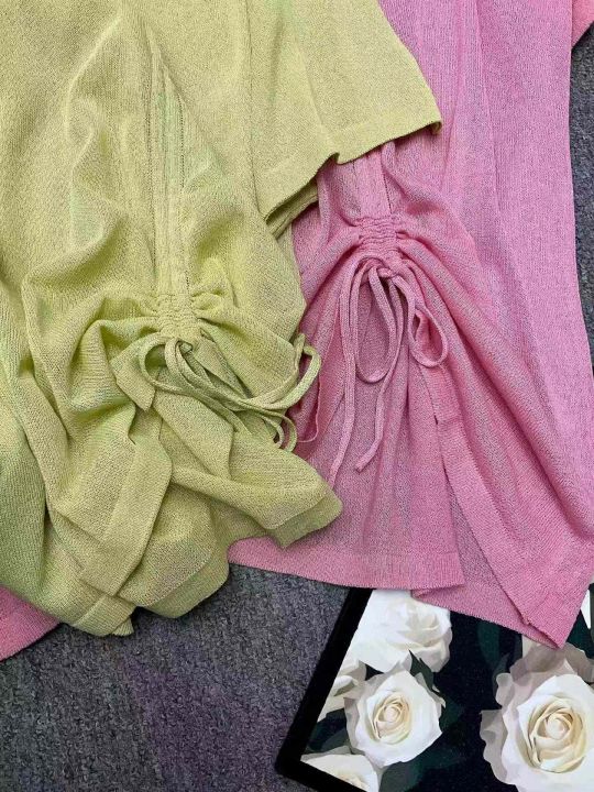 夏季新款宽松大版慵懒风抽绳设计款针织短袖T桖,独立包装,均码面料柔软丝滑,450件,全清4.9元超低价秒杀!分货加一!