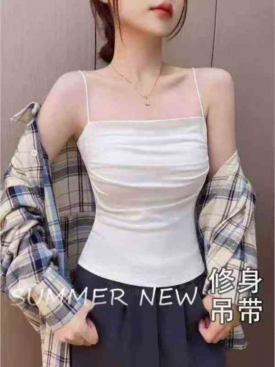 800件纯欲褶皱吊带背心女夏季带胸垫显瘦内搭打底外穿修身美背短款上衣 独...