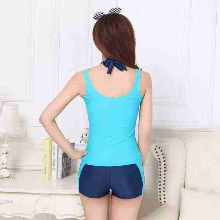 5.8清132套锦纶游泳衣套装 女式分体款泳装韩版简约 保守双肩平角裤两件套 上衣内里有杯罩 面料丝滑 有弹力 码数S-XL 独立包装