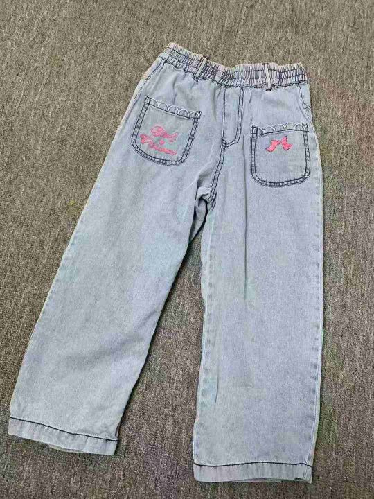 5.8清405件MQD童装女中大童牛仔裤夏季新款儿童休闲甜美百搭宽松阔腿裤。大货基本都是浅蓝色 码数120-165 独立包装。 货号:24862