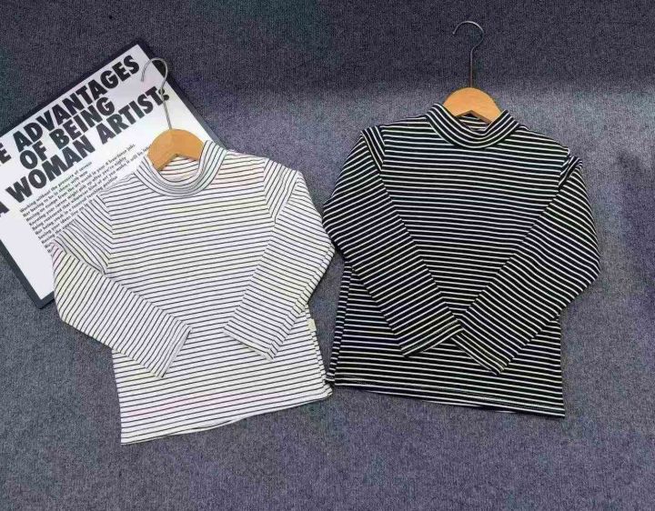 实体店下架时尚秋冬童装条纹加绒打底衣 200件左右 码数100-160 单款2色 货品干净 1手码1包 婴儿绒 面料柔软舒适 全清5.8