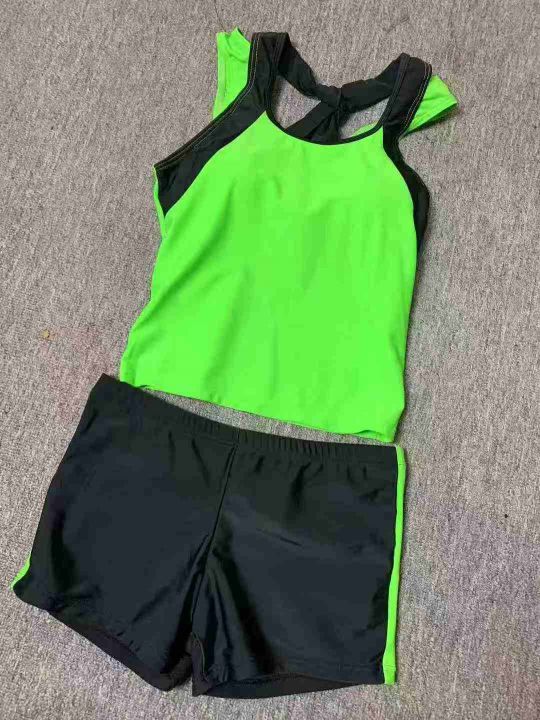 5.8清132套锦纶游泳衣套装 女式分体款泳装韩版简约 保守双肩平角裤两件套 上衣内里有杯罩 面料丝滑 有弹力 码数S-XL 独立包装