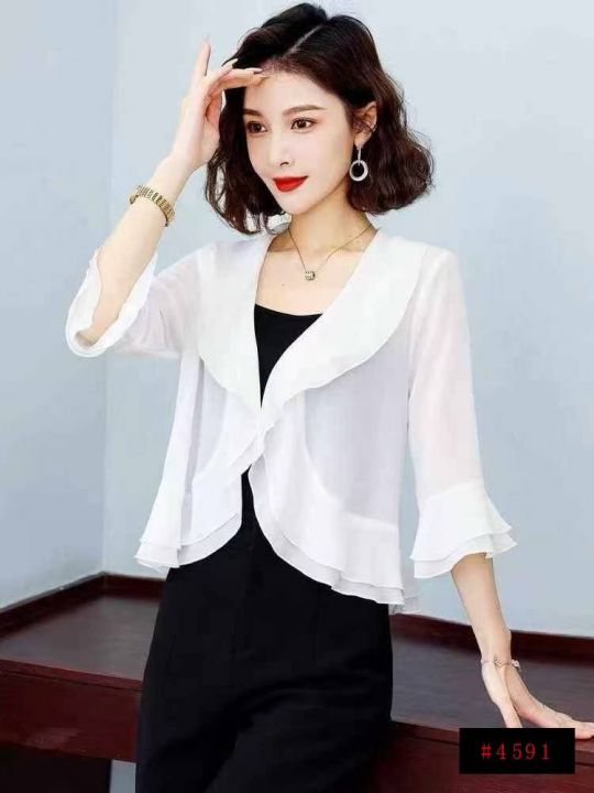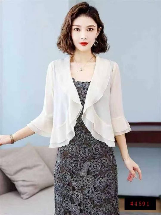 529件荷叶边短款长袖开衫外搭披肩外套。花型比较多,面料舒适。S一2XL,独立包装带吊牌(模特图仅供参考),全清1.9@_@