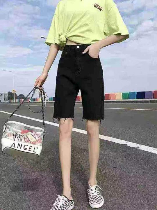 黑色高腰弹力毛边五分牛仔短裤 135件,全清7.8元,码数:S到XL,正品独立包...