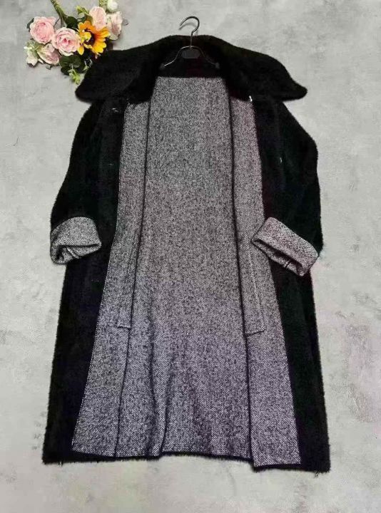 25.8清200件水貂毛大衣单排扣简约百搭水貂绒风衣外套...
