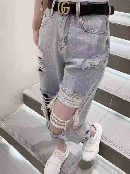 全清8.9 韩版破洞女装牛仔裤,夏季新款宽松显瘦,...