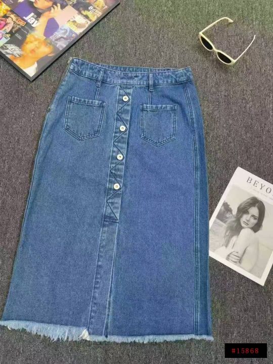数量:105条。全清:6.8,时尚潮流牛仔裙女A字半身长裙,夏季女装中长款开衩高腰包臀裙(有部分扣子拉链轻微生锈但不影响穿着)码数:S~L@_@