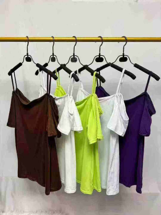 女士棉质短袖吊带t恤衫,数量 510件,单款多色,尺码S...