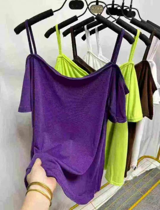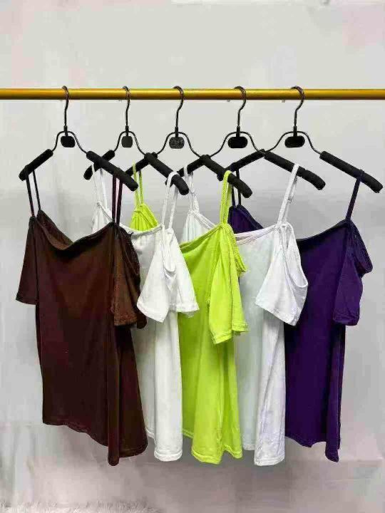 女士棉质短袖吊带t恤衫,数量 510件,单款多色,尺码S-XL(版型偏大)。 全部独立包装带吊牌。工厂新货,低价批发3.8秒杀