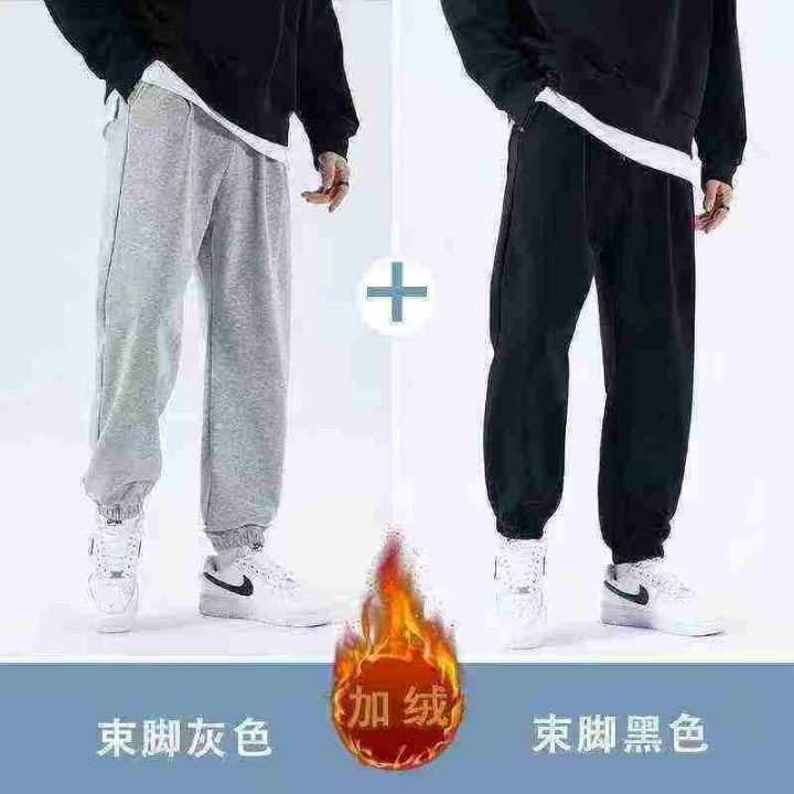 华夫格男女款冬季加绒加厚束脚运动裤宽松加绒休闲裤,...
