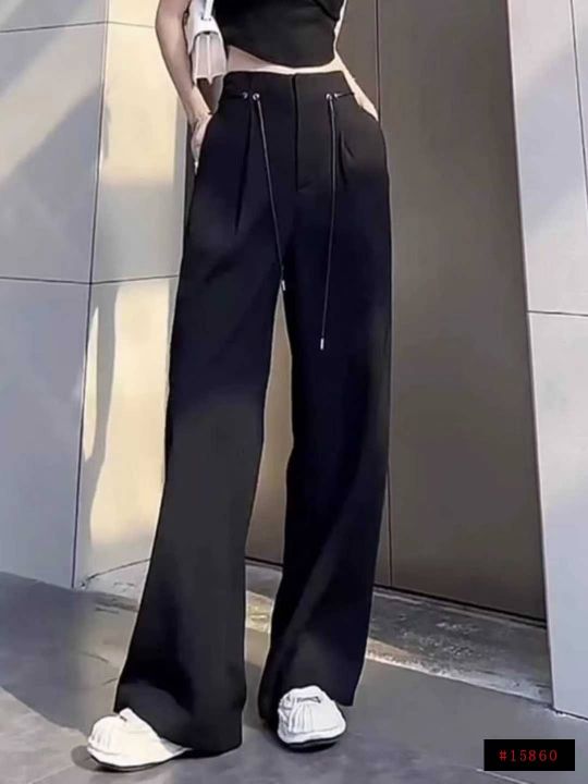 黑色抽绳阔腿高腰宽松垂感西装裤,单款单色,数量115条,S-4XL码,福利价9.9秒杀(3690#·602·17)@_@