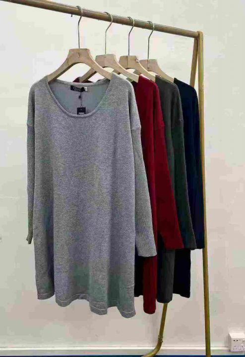 314件休闲大版型圆领长袖针织连衣裙。面料柔软舒适,高弹力,品质好。S一2XL,独立包装带吊牌,全清4.5