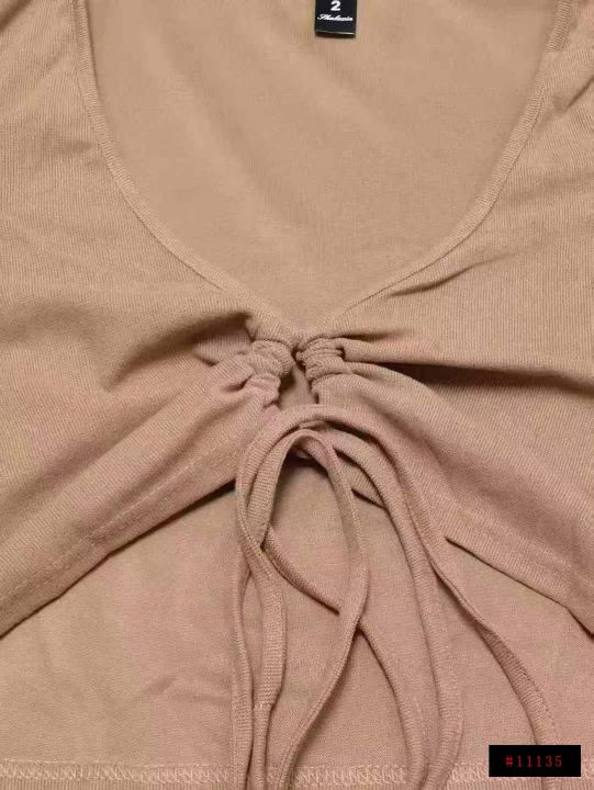 [福]法式设计款纯色高腰V领抽绳短款长袖T恤213件,码数2~5码,单款单色,独立包装。