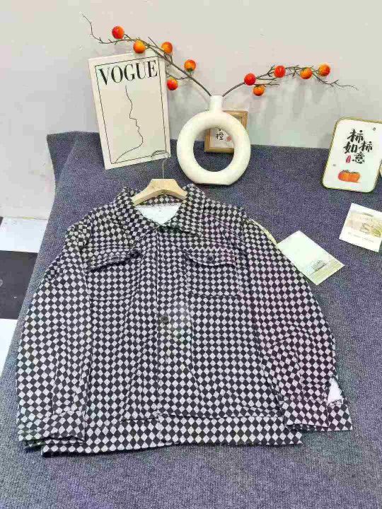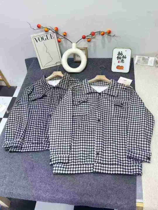 贝吉棋春秋款外套女ins美式复古棋盘格子polo领外套,数量1445件,码数m-2xl,独立包装,全清6.9元
