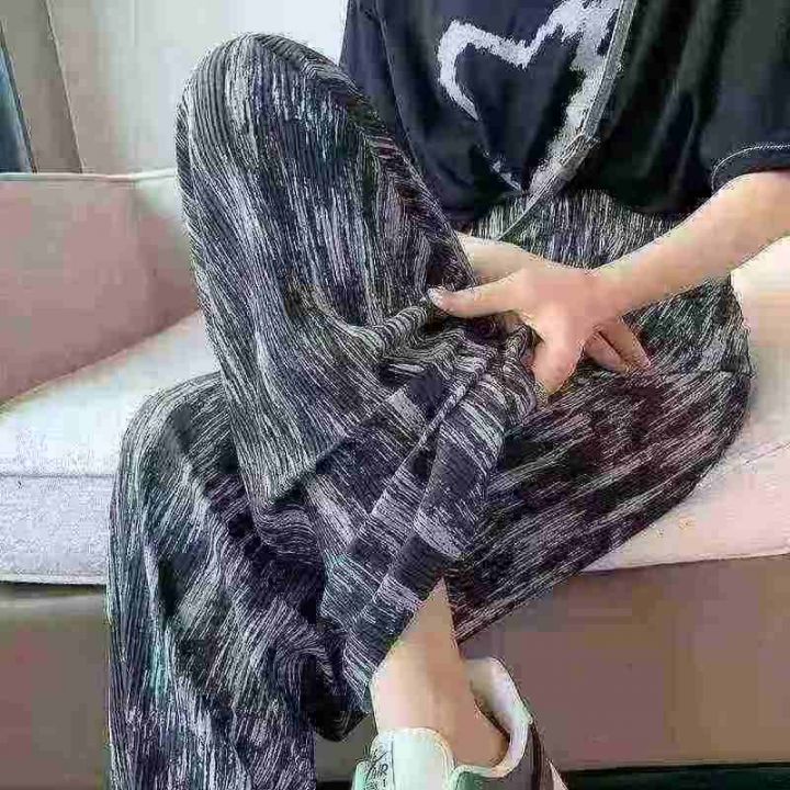 冰凉感直筒冰丝阔腿裤女夏季薄款休闲防蚊显瘦垂感扎染裤子,独立包装,码数M-2XL(2-5)数量496条,3码裤长100厘米,货号0915#54