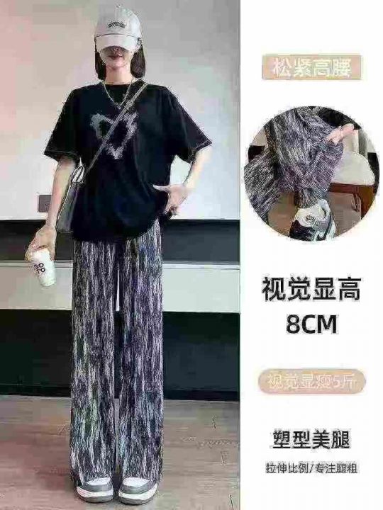 冰凉感直筒冰丝阔腿裤女夏季薄款休闲防蚊显瘦垂感扎染裤子,独立包装,码数M-2XL(2-5)数量496条,3码裤长100厘米,货号0915#54