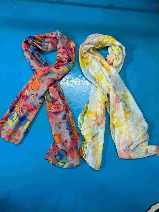 爆款围巾热带植物花卉亮色棉麻手感好花纹多色沙滩巾挂流苏披肩,原包装商标吊牌价几百,6800条左右,全清1.99块,分货加0.5