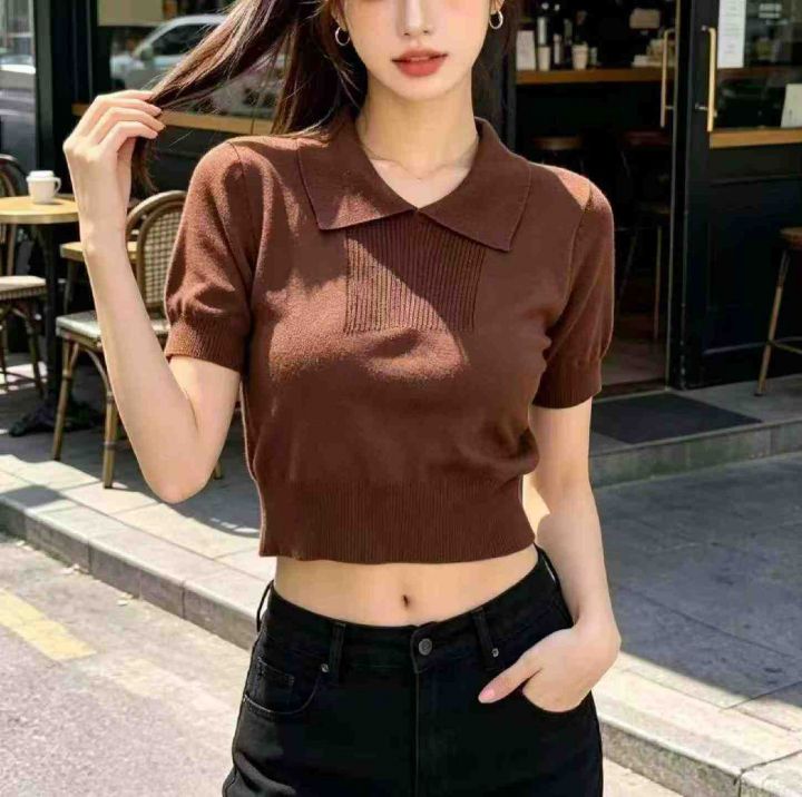 夏季新款美拉德色系Polo领薄款针织短袖T桖,独立包装,均码面料柔软舒适弹...