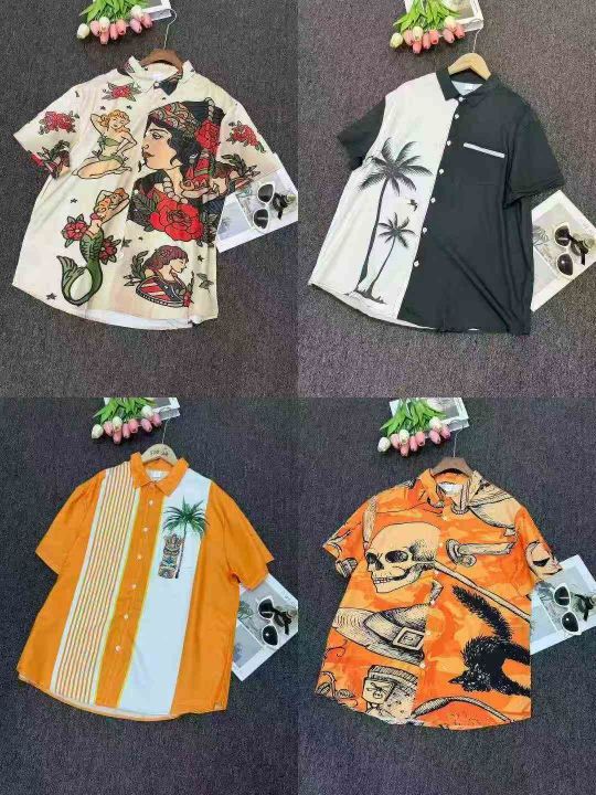 欧洲站夏季新款男士衬衫夏日风情时尚短袖免熨烫翻领衬...